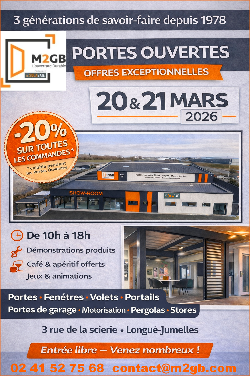 Depuis 1978, l’équipe M2GB L’ouverture durable conseille ses clients particuliers, professionnels, commerçants, administrations, pour la réalisation de travaux d’ouvertures, fermetures et automatismes.